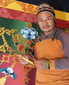 Dorje Karmarong explores his roots in Karmarong culture through various mediums such as painting, music and writing. He has studied Buddhism at the Samye Monastery in Kathmandu and teaches thangka painting in and outside Nepal. He also has experience painting thangka murals in gumbas in countries like Vietnam, India, Sri Lanka, Nepal and Singapore. Also, he has written two books about the Karmarong community and its culture.