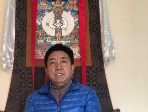 Dawa Thulong is interested in merging thangka and paubha styles in his work. He pays close attention to the compositions and colors in his work. He started painting thangka from the early age of twelve. After finishing his schooling in India, he came to Nepal and took up various pursuits. He specialized in making Tibetan style furniture for several years from 2000. From 2004-2009, he taught Tibetan and English in Dolpa while also practicing thangka painting there. His thangka practice took a new direction after his tutelage under prominent paubha painter Mukti Singh Thapa through the American Himalayan Project.